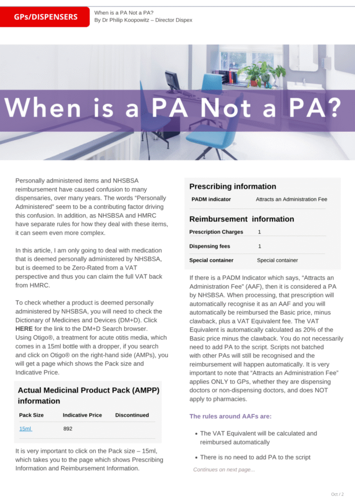 Dispensing Doctors’ Fee Scale